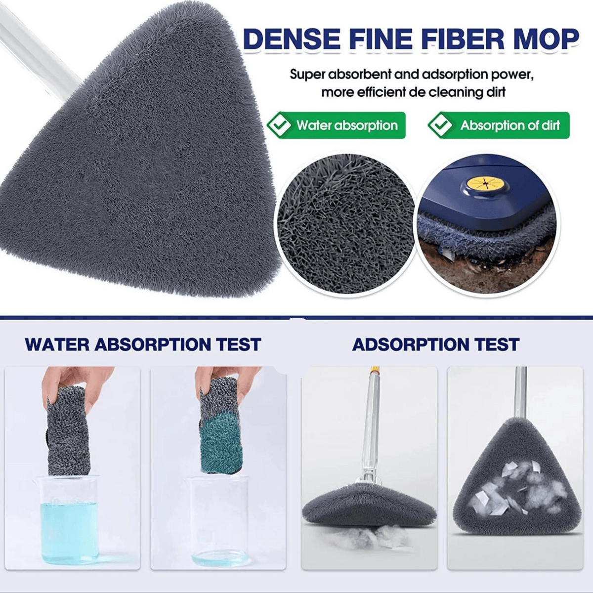 Super Cleaner: Moptrio™️ is your dust magnet! Its microfiber cloth absorbs water quickly and grabs onto dust and dirt tightly. Enjoy a cleaner home in less time.