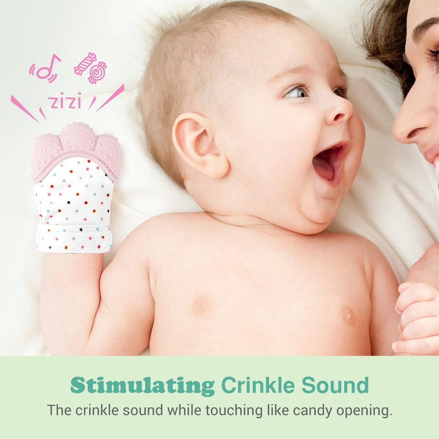 Engaging and Calming: With a colorful design and playful sounds, our gloves not only soothe teething discomfort but also keep your baby entertained.